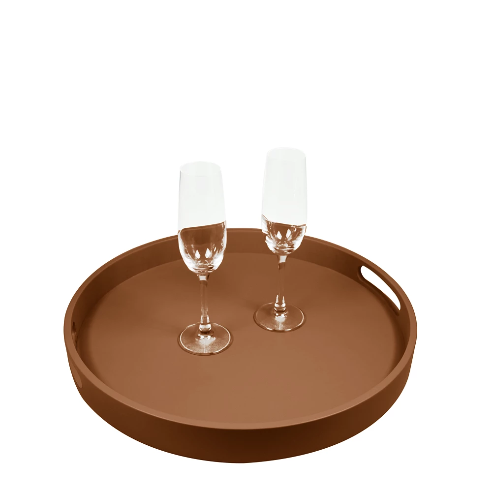 Bandeja de serviço redonda Castanho Tan  - Couro Suave
