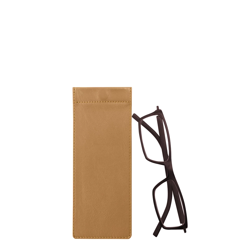 Bolsa de óculos fina magnética Natural  - Couro Suave