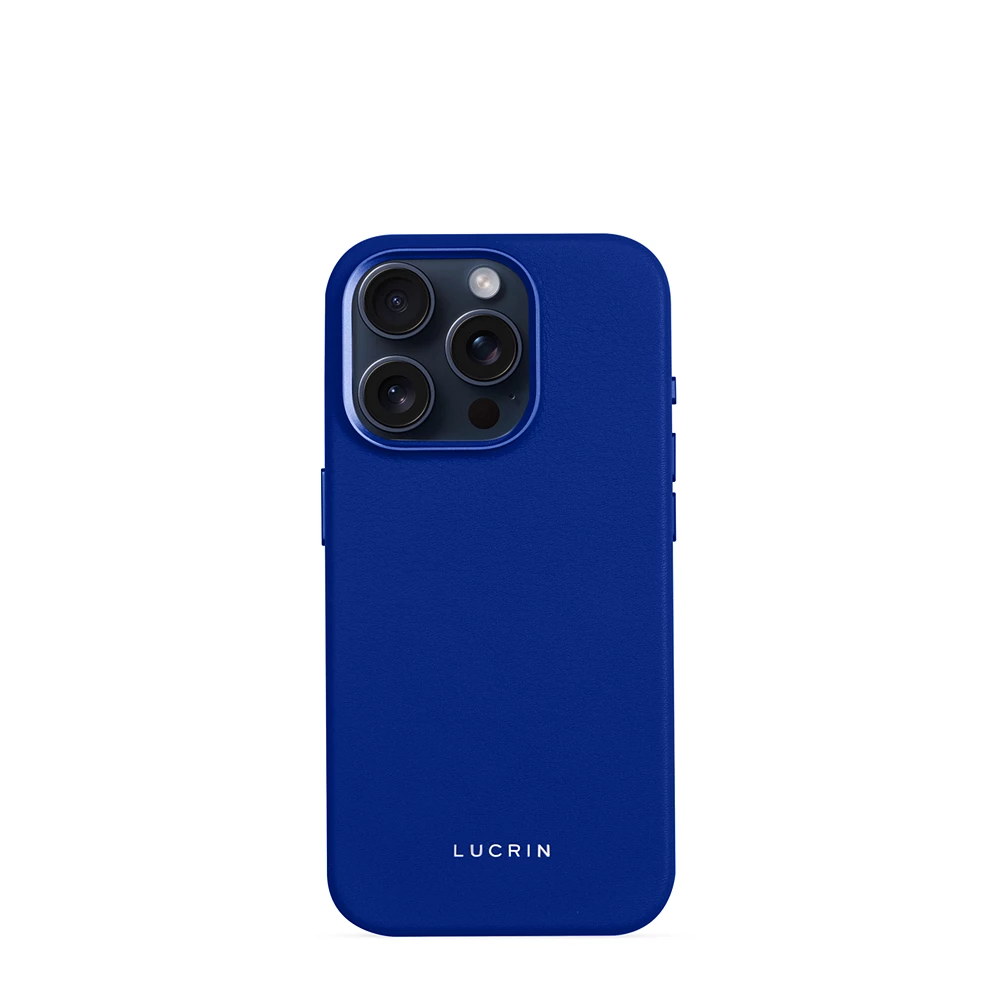 Capa luxuosa - iPhone 15 Pro Azul Real  - Couro de vitelo liso